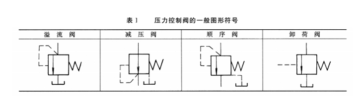 一、液壓密封件系統的壓力控制閥的一般圖形符號見表1: