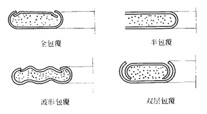 一、金屬包覆密封墊片該密封墊片以非金屬材料為芯材,外層包覆著厚度為0.25~0.5mm的金屬薄板。按包覆狀態,可分為全包覆型密封墊片、半包覆型密封墊片、波形包型覆密封墊片、雙層包覆型密封墊片等。見圖2。