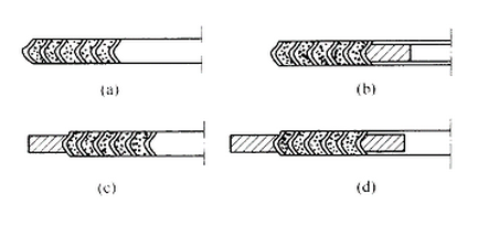 纏繞墊密封墊片有四種類型,見圖2。圖2(a)為基本型;圖2(b)為帶內環的;圖2(c)為帶外環的;圖2(d)為帶內、外環的。鋼帶剖面形狀也有兩種:W形和V形。W形鋼帶回彈性能優于V形,但加工困難,故國內目前絕大部分使用V形。其剖面圖見3。